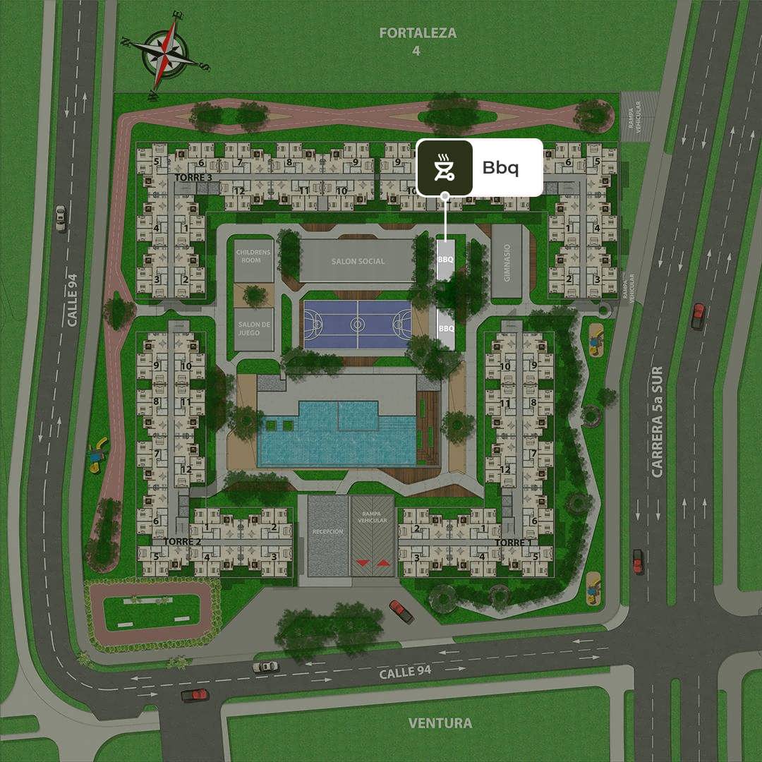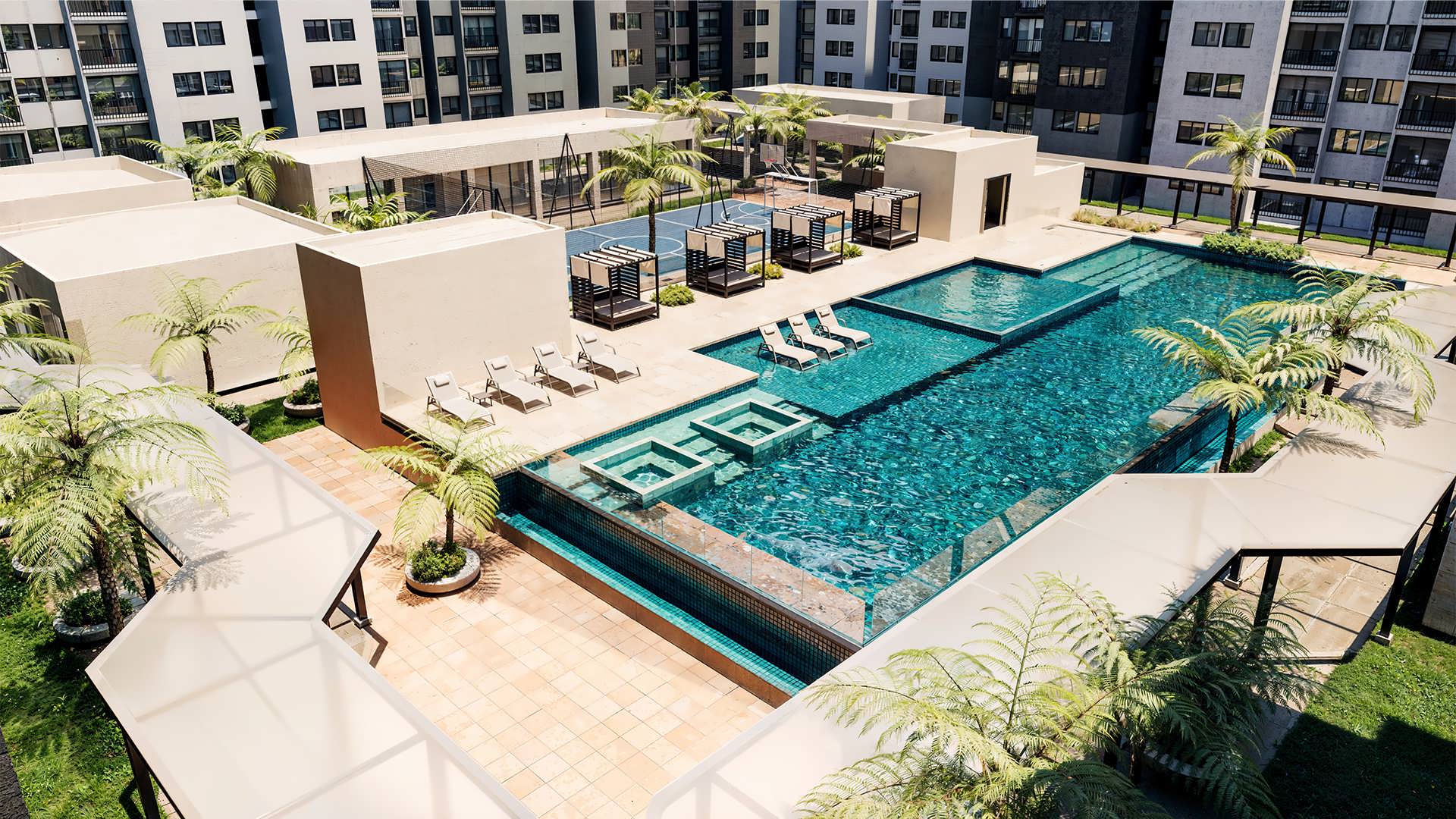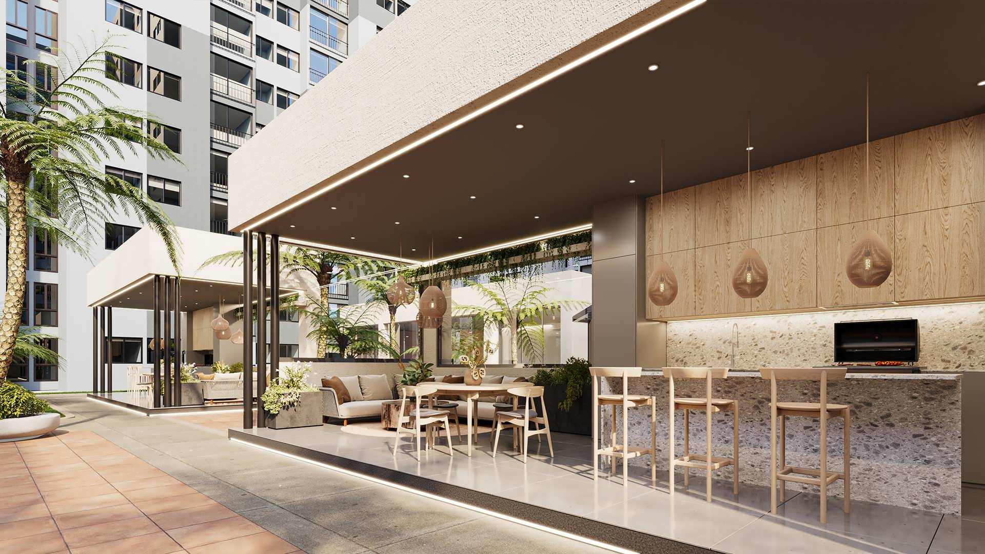 El diseño de las áreas comunes está basado en la funcionalidad y practicidad. Está pensado como una extensión de los  apartamentos y enfocado en alentar a las personas a disfrutar del espacio al aire libre.